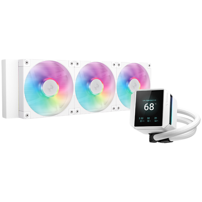 DeepCool MYSTIQUE 360 WH ARGB, 360mm CPU Liquid Cooler, 2.8" LCD screen, 3x120mm PWM ARGB Fans, Fluid Dynamic Bearing, White, Intel LGA1851/1700/1200/1151/1150/1155, AMD AM5/AM4, R-LX360-WHDSNMCP-G-1, 5Y