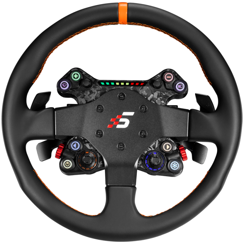 Характеристики:Quick Release 50mm<br/>SimPro Manager<br/>Leather Coating<br/>Carbon Fiber Plate<br/>2 x 7-way Multi-position Switch<br/>Round Rim<br/>Customizable Paddle Modules<br/>2 x 12-Set Programmable LED Encoders<br/>2 x Thumb Knob Encoders<br/>Aluminum Frame