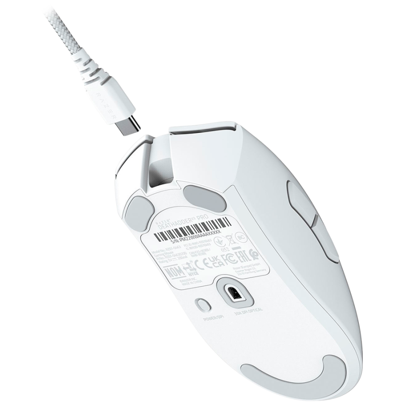 Razer DeathAdder V3 Pro - White Edition, Ergonomic Wireless Gaming Mouse, Speedflex Charging Cable USB Type C, 30000DPI, Optical Mouse Switches Gen-3, 63 g, Focus Pro 30K Optical Sensor