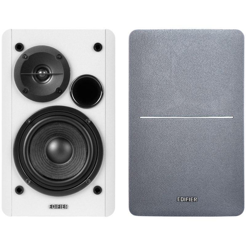Edifier R1280T 2.0 Bookshelf Speakers, RCA, 0.5-inch Tweeters, 4-inch Drivers, 42W (RMS), Control Knobs and Remote Control, White